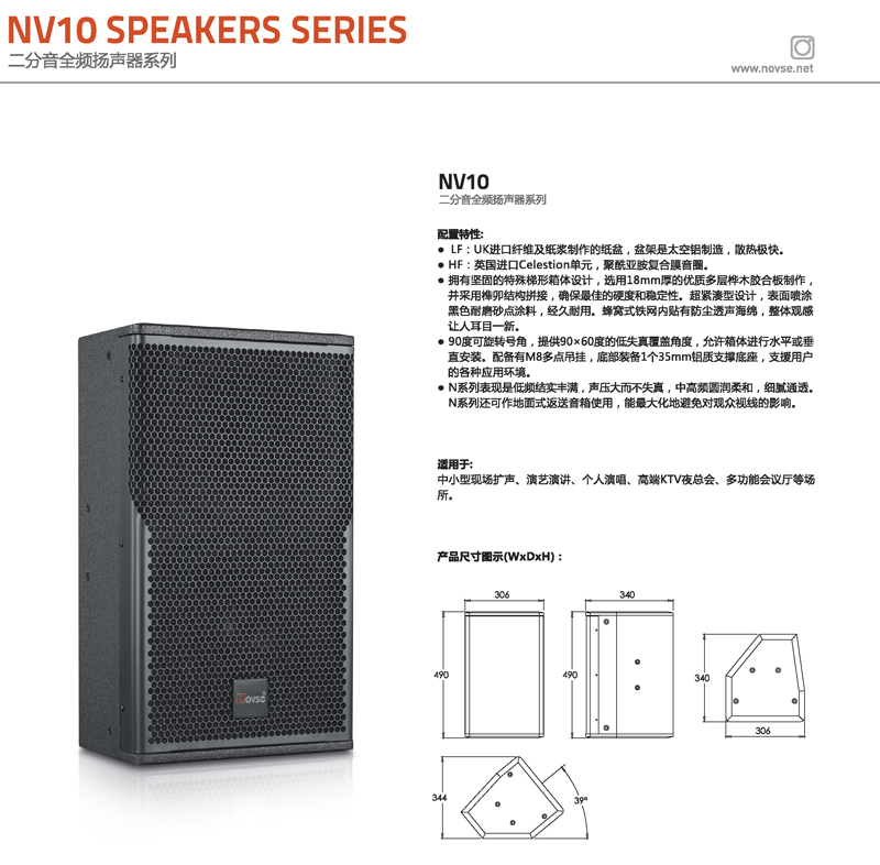 中小型现场扩声、演艺演讲、个人演唱、高端KTV夜总会、多功能会议厅等场所.NV系列还可作地面式返送音箱使用,能更大化地避免对观众视线的影响.