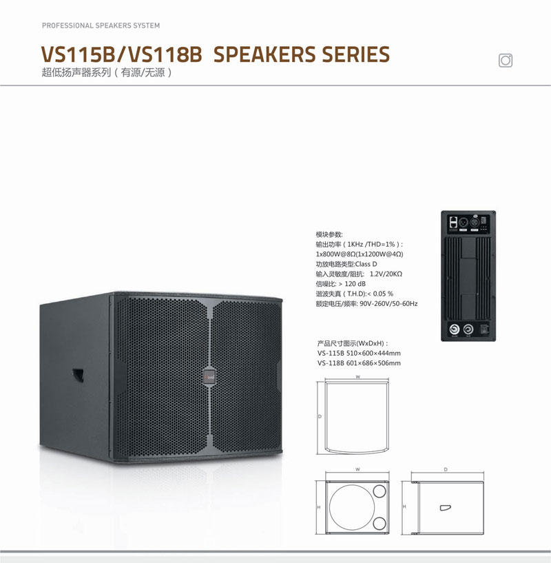 NVS系列超低音扬声器,由15寸的NVS115B和18寸的NVS118B两个规格型号组成。适合作NVS系列家族中全频扬声器的无源低音扩展。箱体采用优质中纤板制作,板材榫卯结构拼接,确保箱体牢固可靠,表面喷涂耐磨黑色涂料,保证硬度和稳定性。声音紧凑而低沉,具有不可想象的低频冲击力。