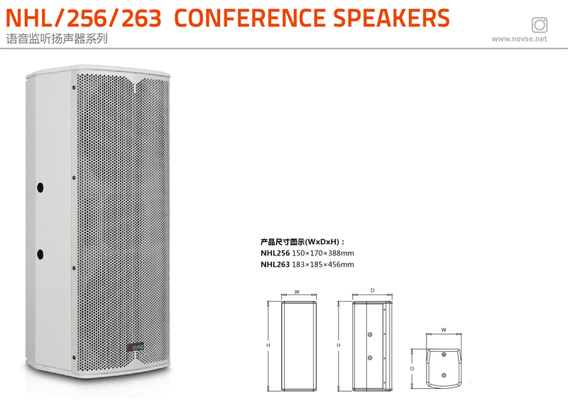 NHL系列包含HL253和HL263两个规格型号,MDF木质箱体结构,榫卯结构拼接,确保更佳的硬度和稳定性,尺寸小巧,外观精致优雅。产品支持壁挂或支架形式安装,丰富的M8吊点,竖直或水平方向均可灵活吊挂。选用优质单元,保证声音的高保真重放,中频表现厚实突出,声音优美,能为用户提供性能优越的商用扩声解决方案。