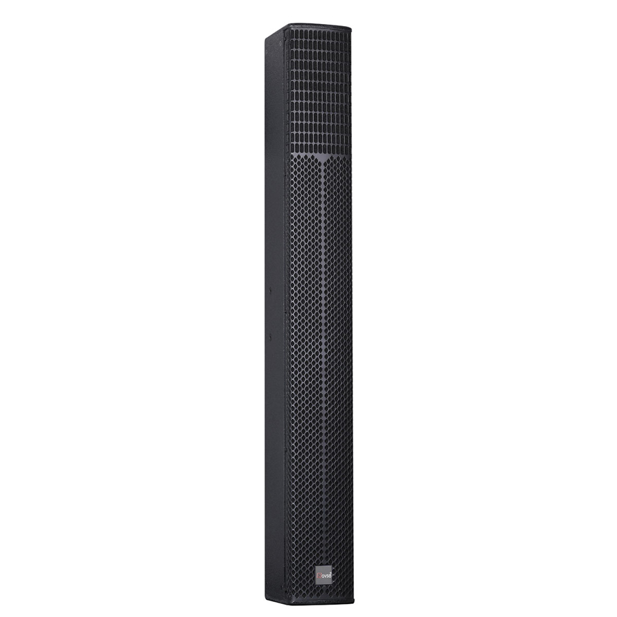 该柱式扬声器包含8个线性排列的4.5”低音单元和2个1.3”号筒负载高音单元组成。箱体由桦木胶合板制成,板材榫卯结构拼接,网罩是粉末涂层开孔金属材料,底部配备有单孔35mm底座,支持三脚支撑架*应用。