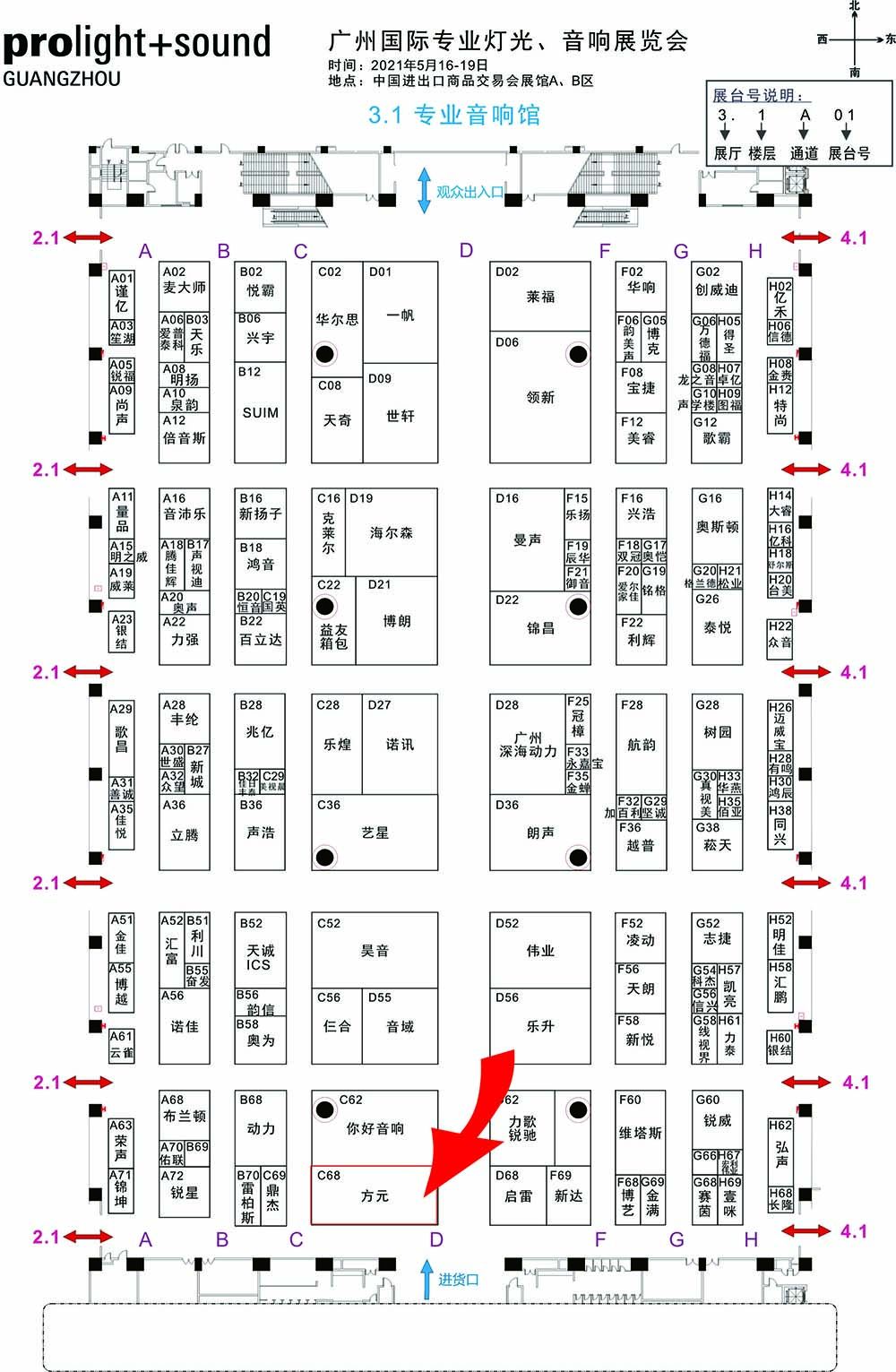 2021广州国际专业灯光、音响展览会时间是2021年5月16~19日,方元音响展位号3.1C68.